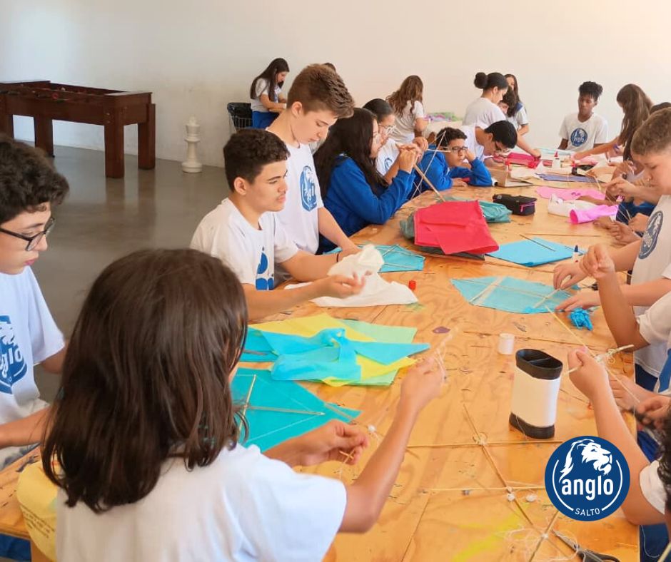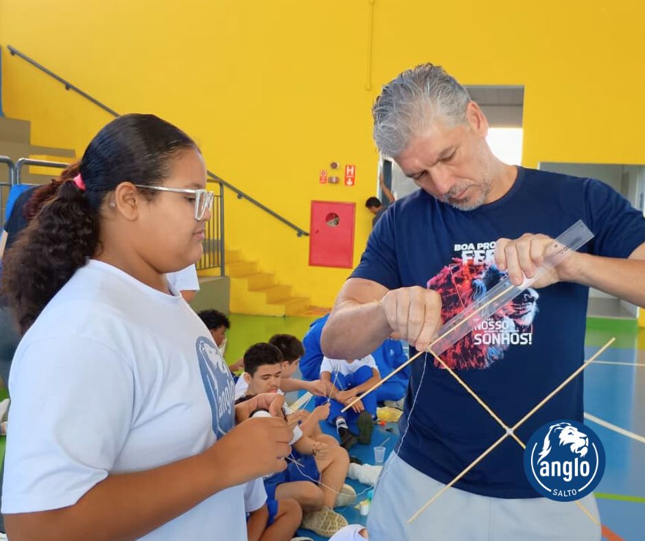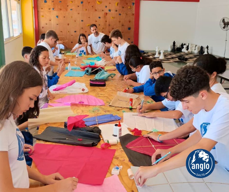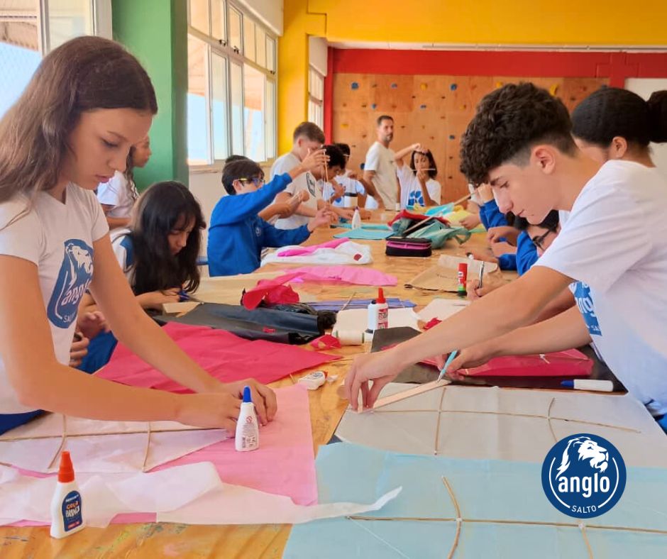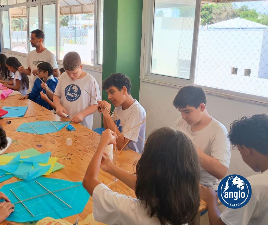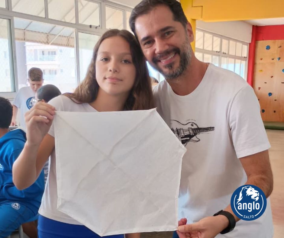 Durante a atividade, que uniu Literatura, Matemática e de Desenho Geométrico, os alunos aplicaram conceitos como ângulos (agudos e obtusos), simetria, proporção e equilíbrio, compreendendo de forma prática como o posicionamento das varetas e a formação dos ângulos influenciam na estrutura da pipa.